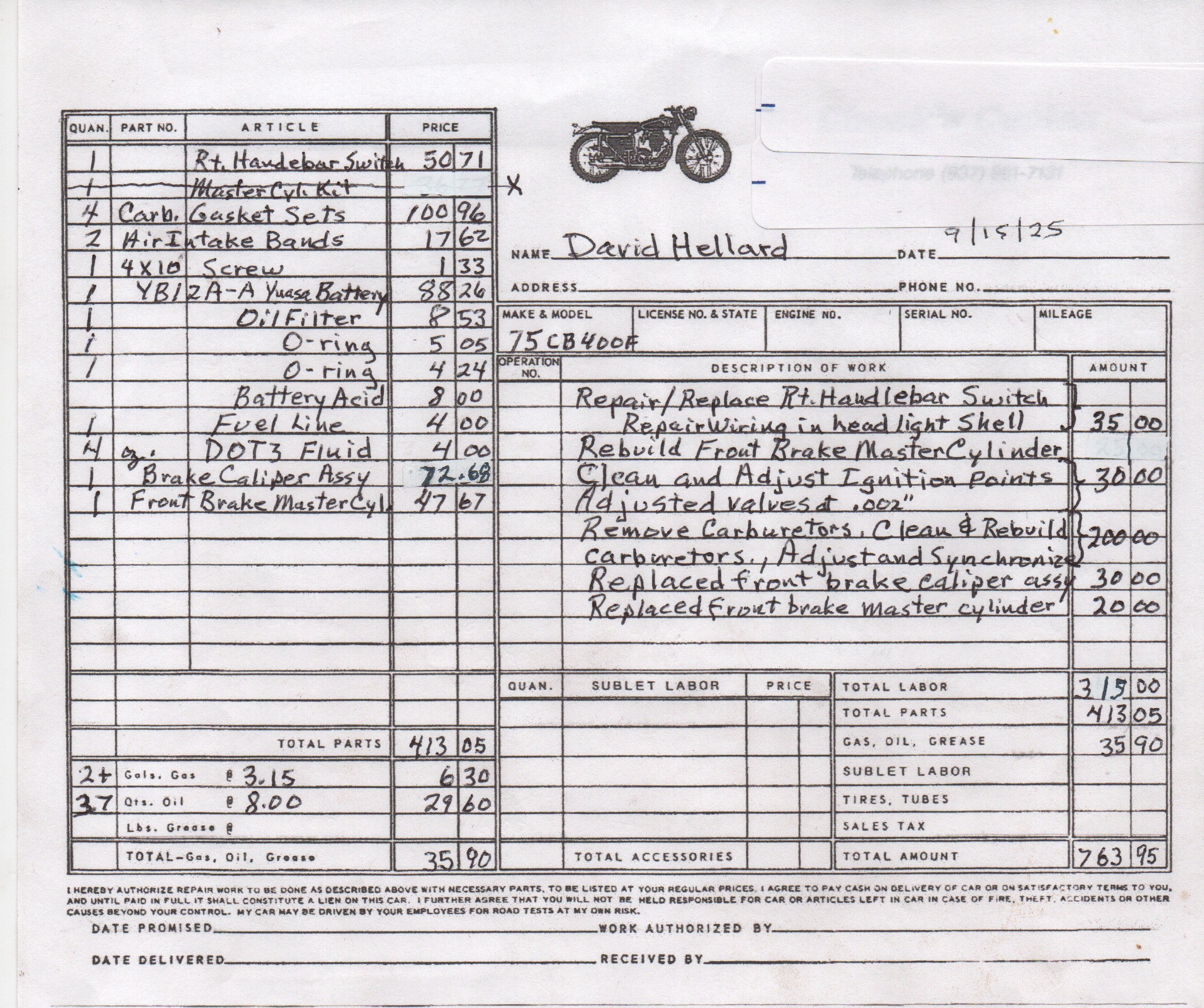 It has been completely refurbished by a lifetime Honda Mechanic. See attached repair bill. Tires are like new. It starts easily and runs clean at all rev ranges. All electrics function properly. The clutch is smooth and shifting is crisp. Original 4/1 Honda muffler in excellent condition.