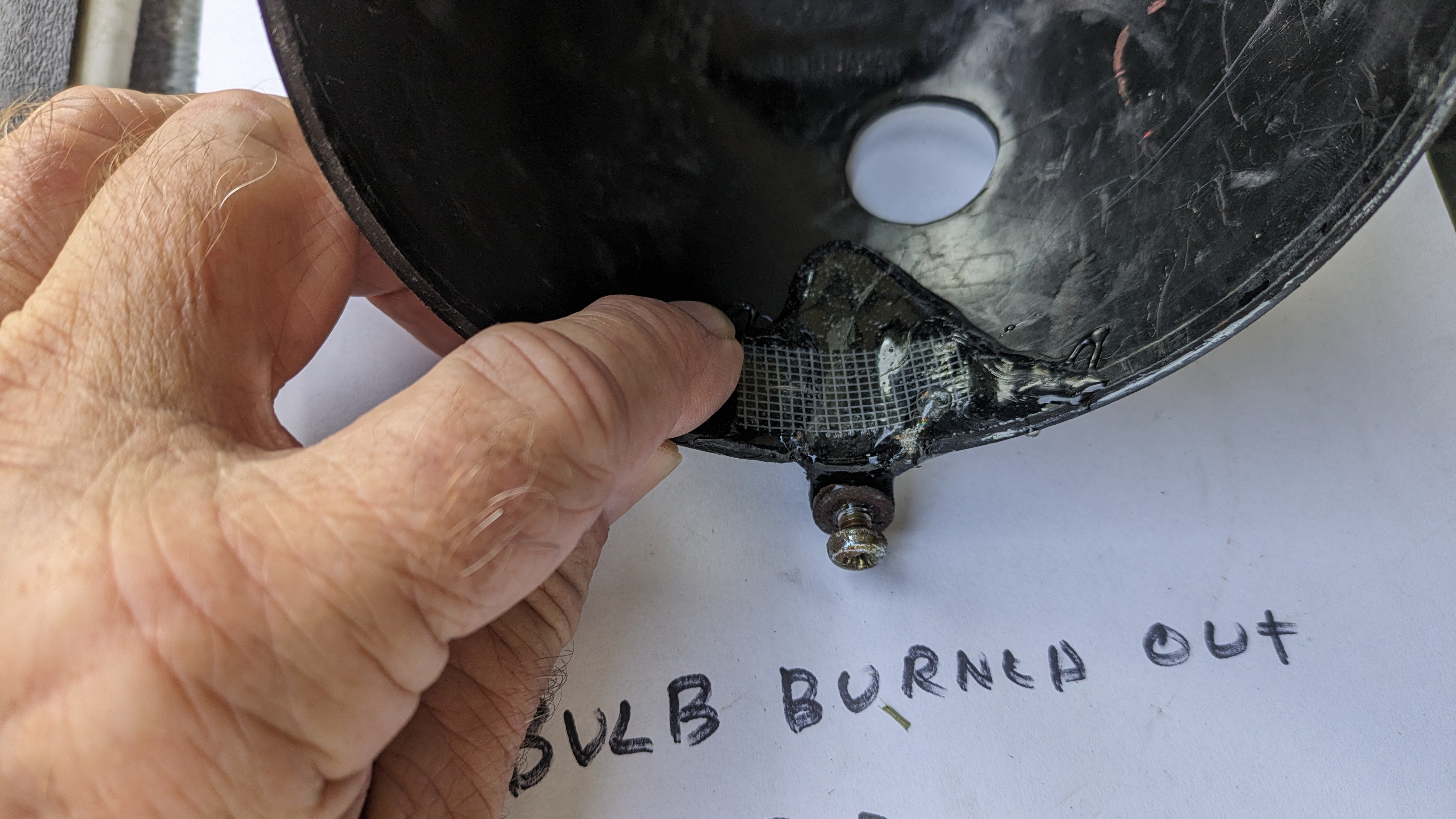 OEM product, in fair condition. and priced accordingly. Lots of pictures, make sure it is what you want. . tests good with battery see picture , chrome ring has rust, original wiring. Bottom mount had crack, that was strongly repaired with epoxy/screen. This will take some work to get it mounted squarely but it is original