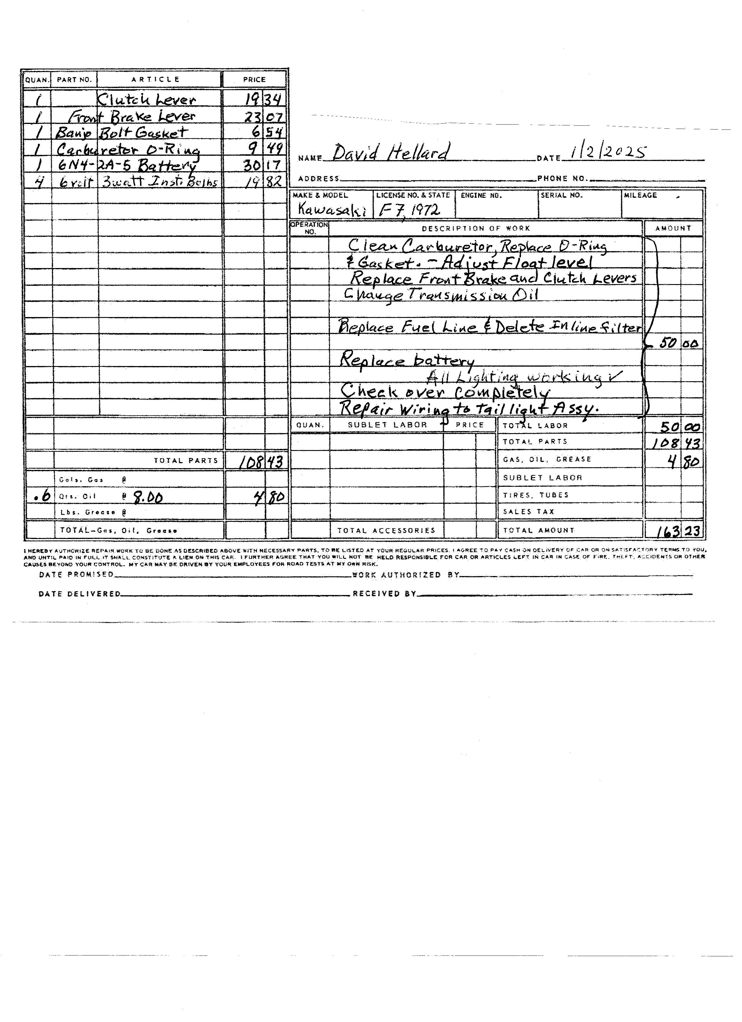 I just got it back from my trusted mechanic who gave it a full wheels off inspection and the following maintenance items